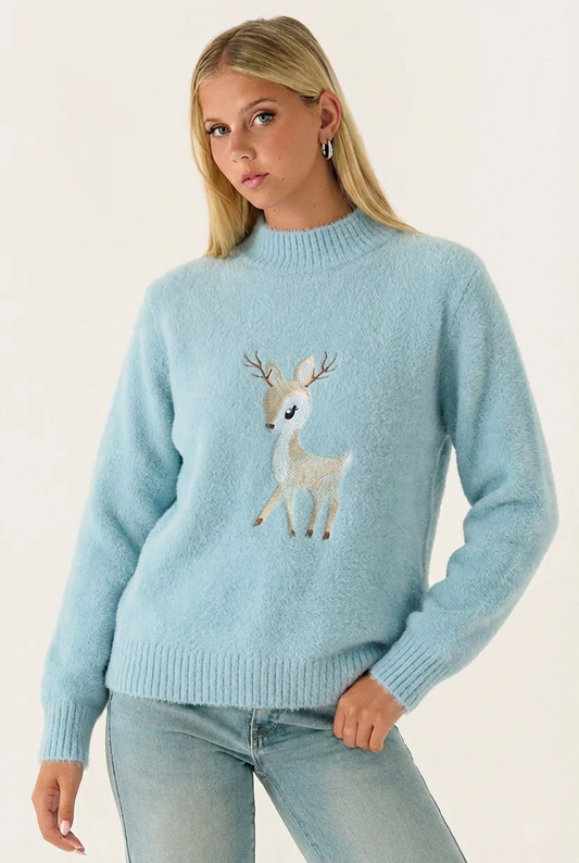 Sweat en Maille à Col Montant – Motif Animalier Brodé