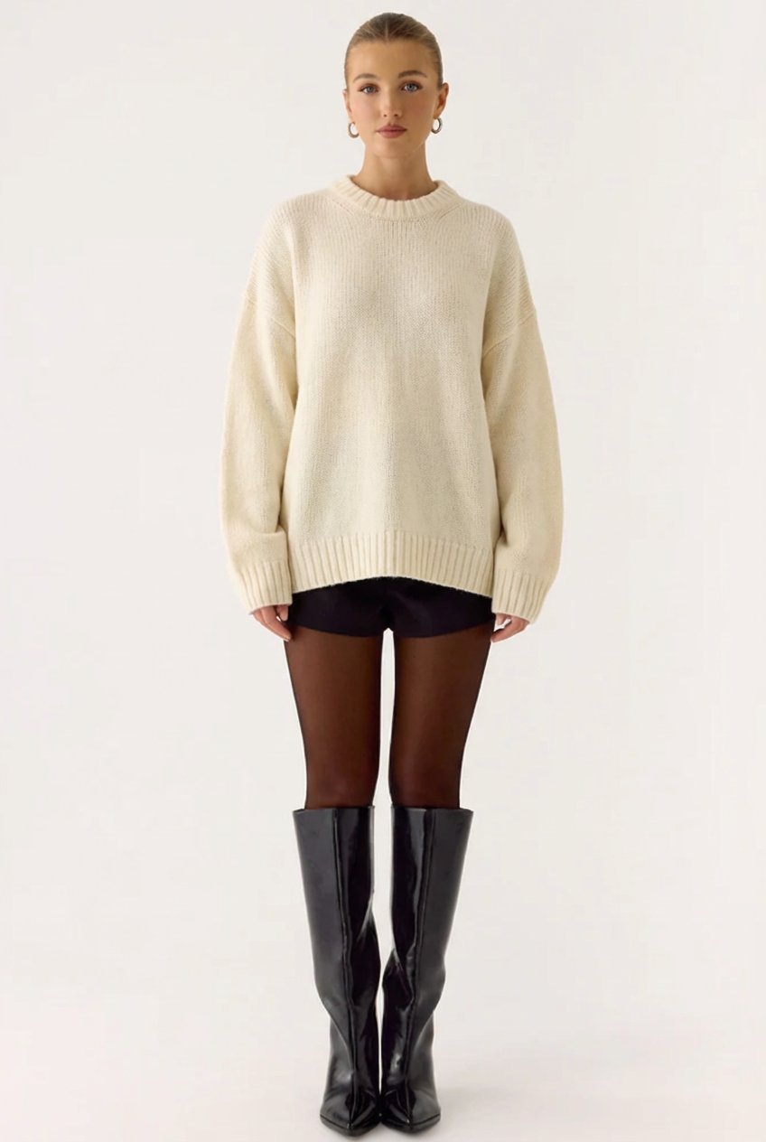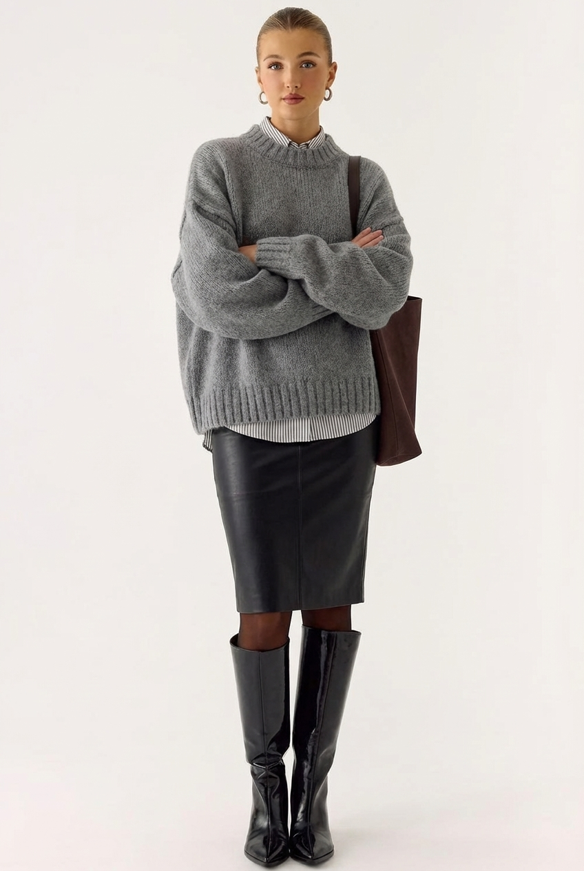 Plongez dans un cocon de douceur avec notre pull oversize en grosse maille. Pièce maîtresse de la saison, ce pull réinterprète le classique col rond avec un volume généreux et une texture luxueuse, idéal pour créer des jeux de superpositions sophistiqués.